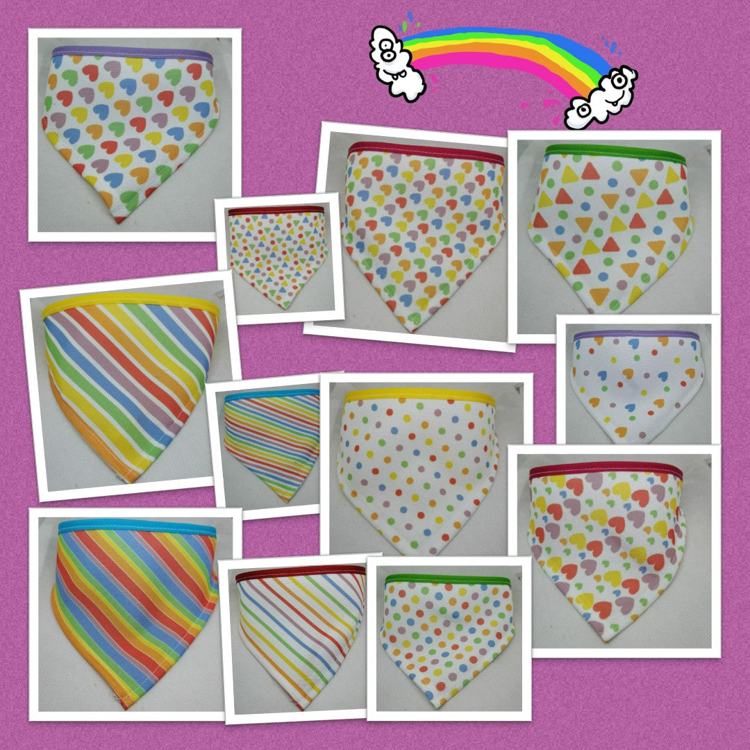El triangulo mini los catetos miden 10 cm y el largo incluyendo el bies para el amarre es de 35 cm, el chico 15 cm x 42 cm, el mediano 20 cm x 52 cm y el grande 25 cm x 60 cm aproximadamente