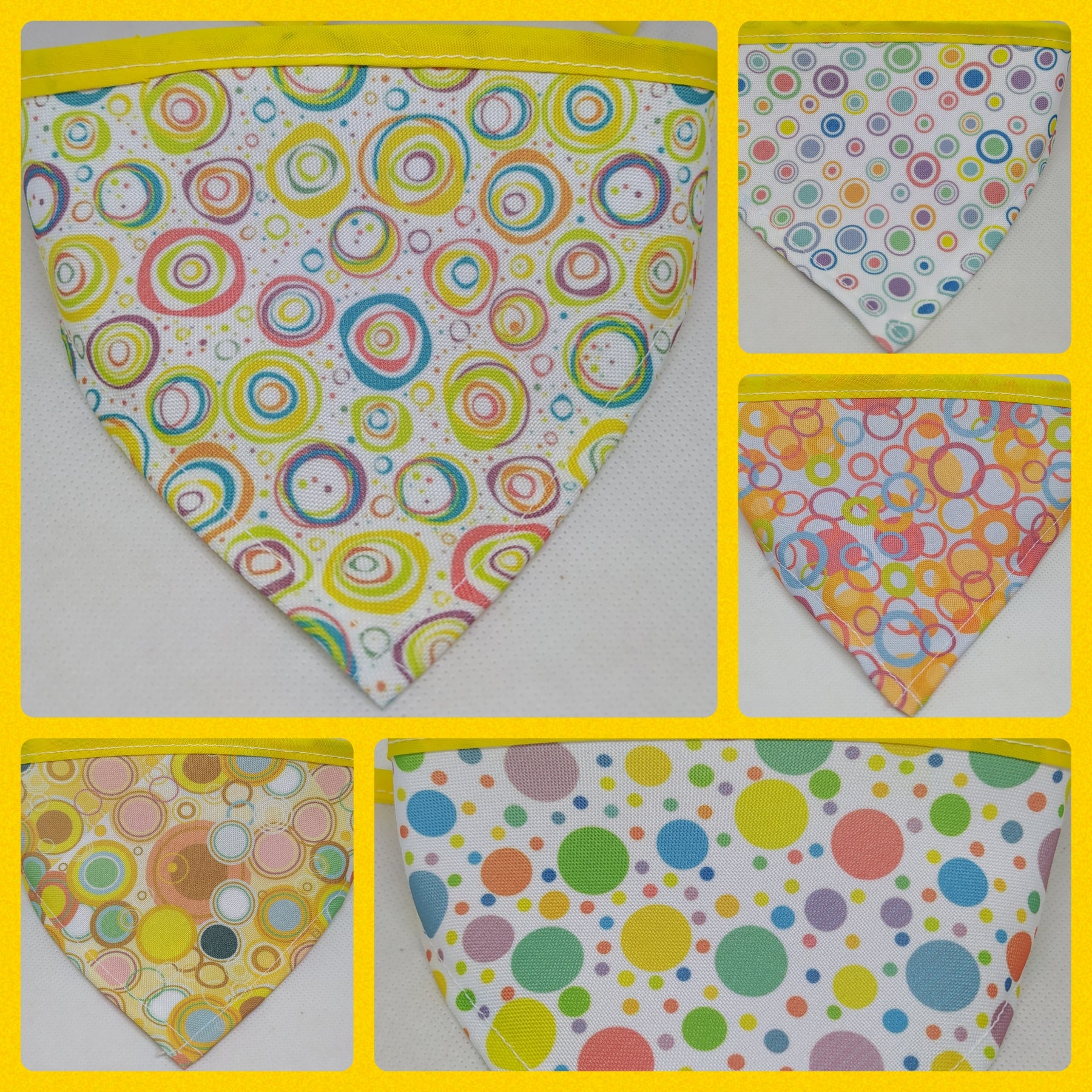 El triangulo mini los catetos miden 10 cm y el largo incluyendo el bies para el amarre es de 35 cm, el chico 15 cm x 42 cm, el mediano 20 cm x 52 cm y el grande 25 cm x 60 cm aproximadamente