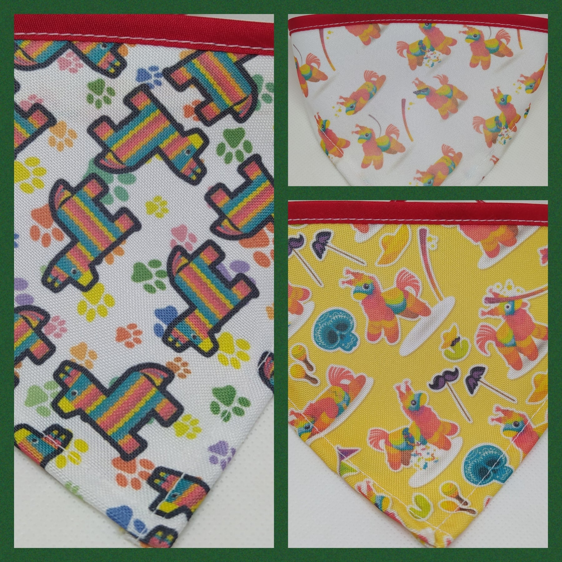 El triangulo mini los catetos miden 10 cm y el largo incluyendo el bies para el amarre es de 35 cm, el chico 15 cm x 42 cm, el mediano 20 cm x 52 cm y el grande 25 cm x 60 cm aproximadamente