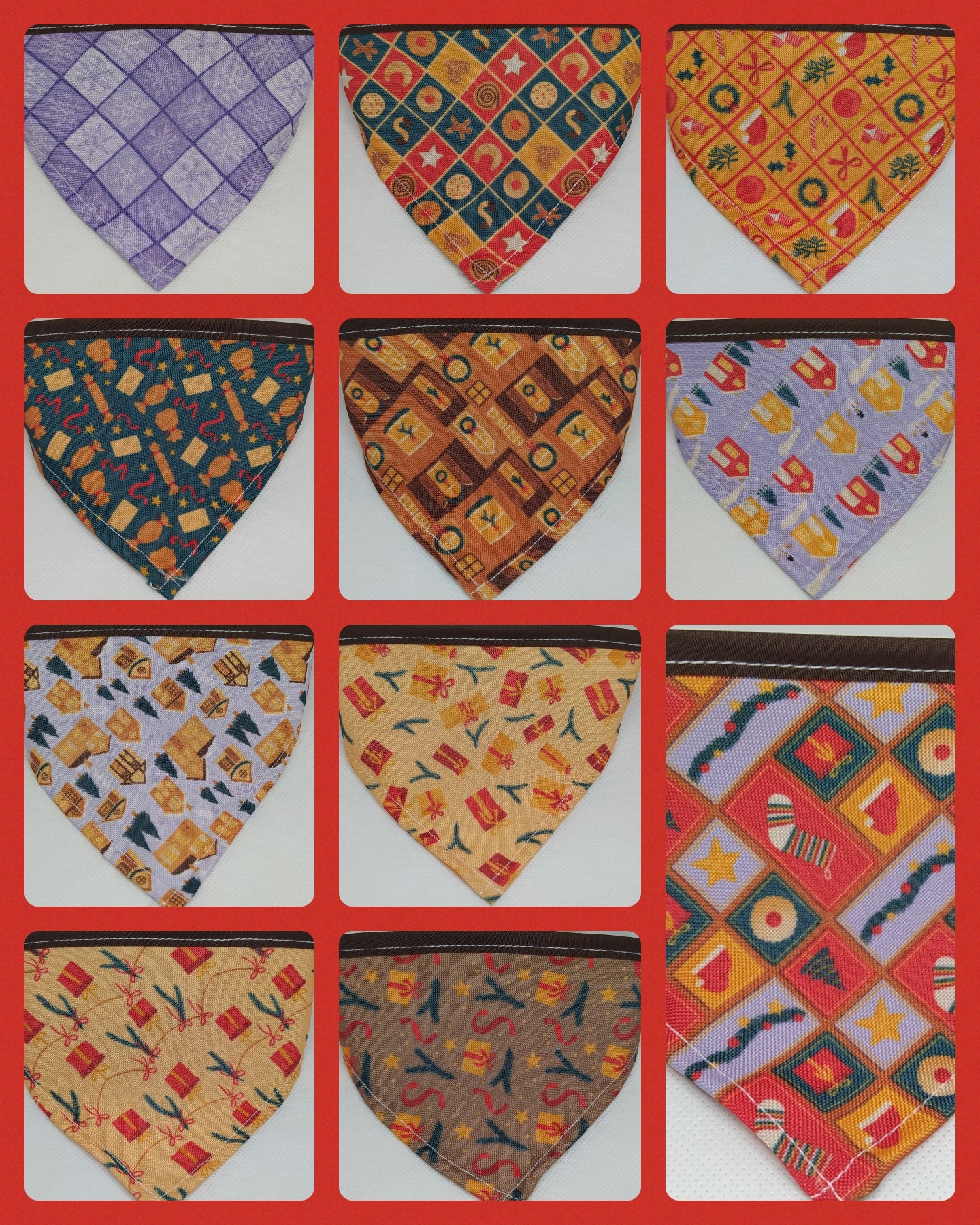 El triangulo mini los catetos miden 10 cm y el largo incluyendo el bies para el amarre es de 35 cm, el chico 15 cm x 42 cm, el mediano 20 cm x 52 cm y el grande 25 cm x 60 cm aproximadamente