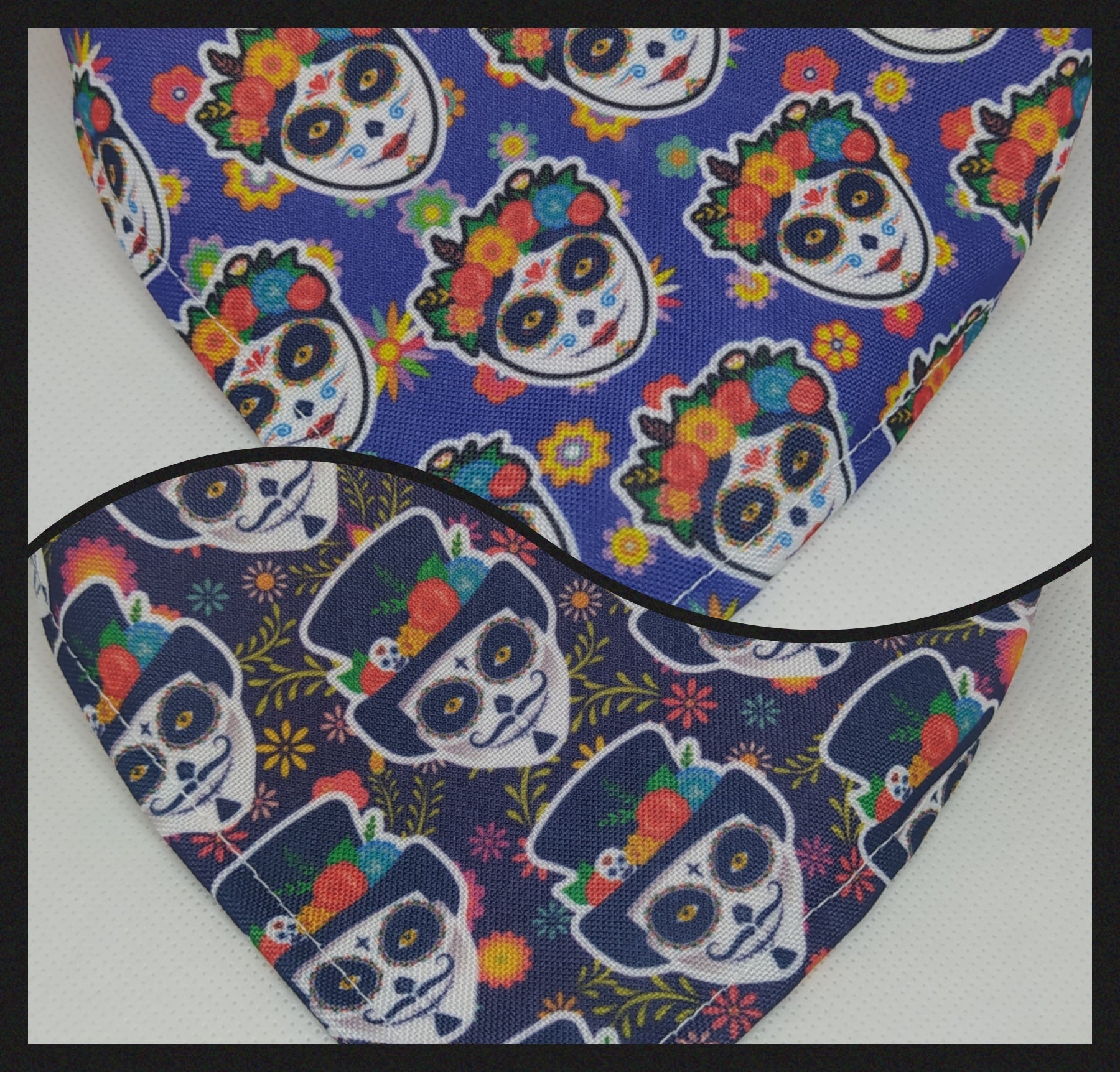 El triangulo mini los catetos miden 10 cm y el largo incluyendo el bies para el amarre es de 35 cm, el chico 15 cm x 42 cm, el mediano 20 cm x 52 cm y el grande 25 cm x 60 cm aproximadamente