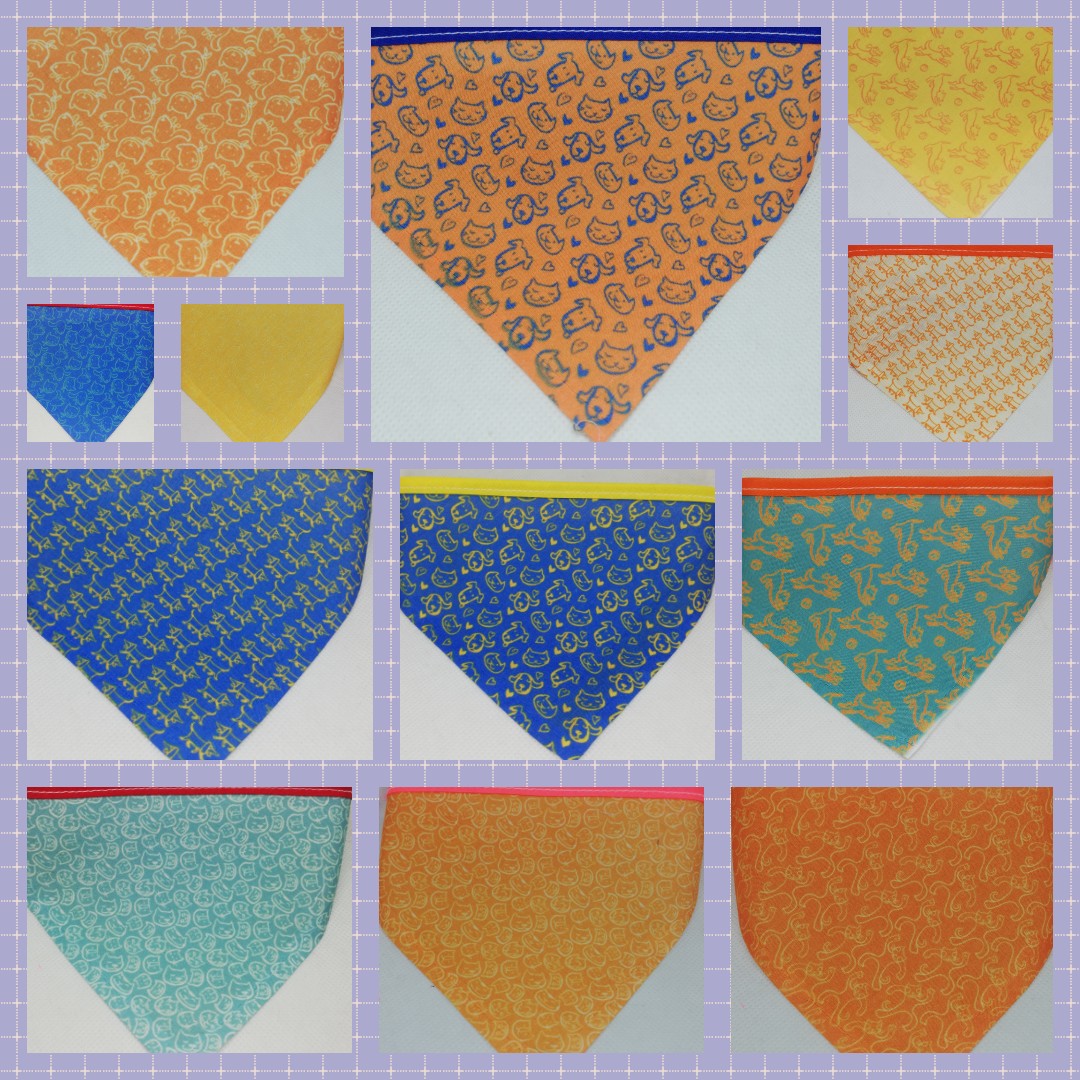 El triangulo mini los catetos miden 10 cm y el largo incluyendo el bies para el amarre es de 35 cm, el chico 15 cm x 42 cm, el mediano 20 cm x 52 cm y el grande 25 cm x 60 cm aproximadamente