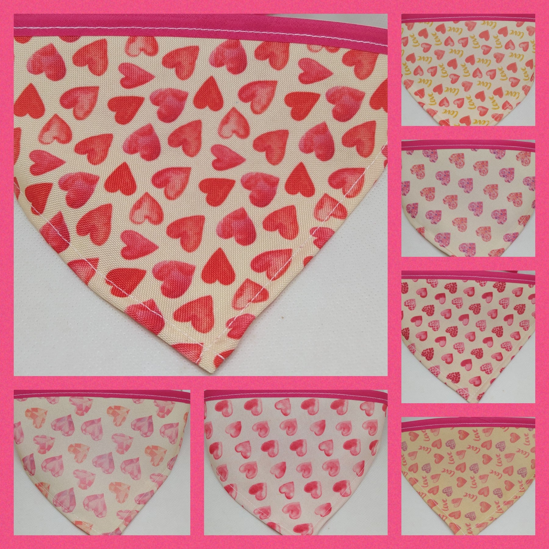 El triangulo mini los catetos miden 10 cm y el largo incluyendo el bies para el amarre es de 35 cm, el chico 15 cm x 42 cm, el mediano 20 cm x 52 cm y el grande 25 cm x 60 cm aproximadamente