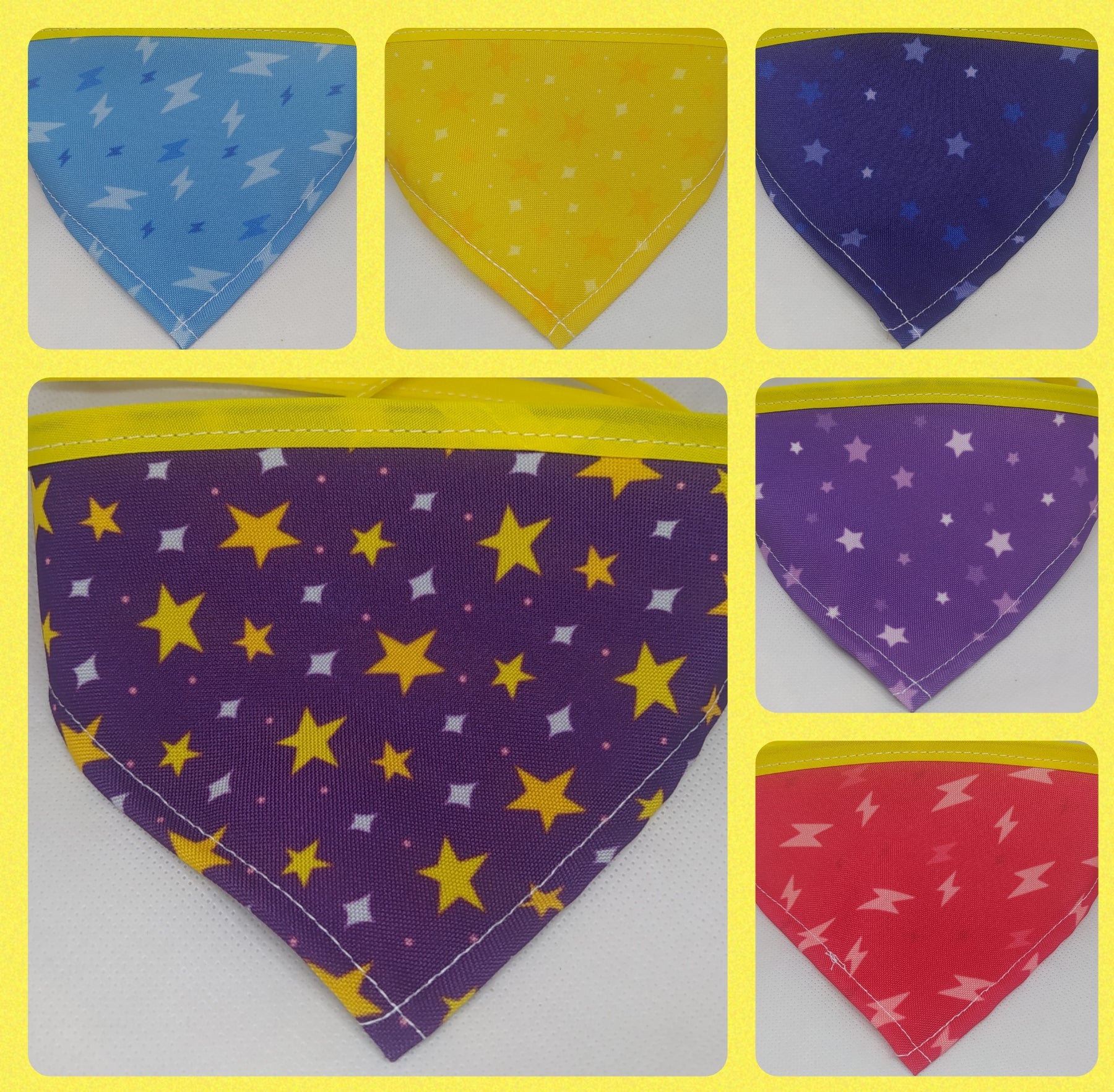 El triangulo mini los catetos miden 10 cm y el largo incluyendo el bies para el amarre es de 35 cm, el chico 15 cm x 42 cm, el mediano 20 cm x 52 cm y el grande 25 cm x 60 cm aproximadamente