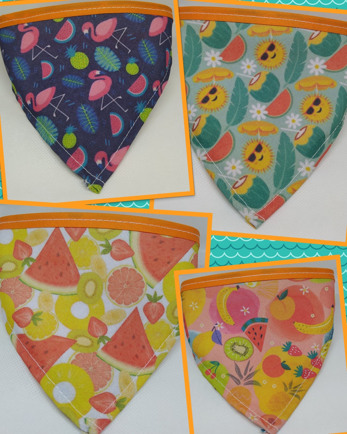 El triangulo mini los catetos miden 10 cm y el largo incluyendo el bies para el amarre es de 35 cm, el chico 15 cm x 42 cm, el mediano 20 cm x 52 cm y el grande 25 cm x 60 cm aproximadamente