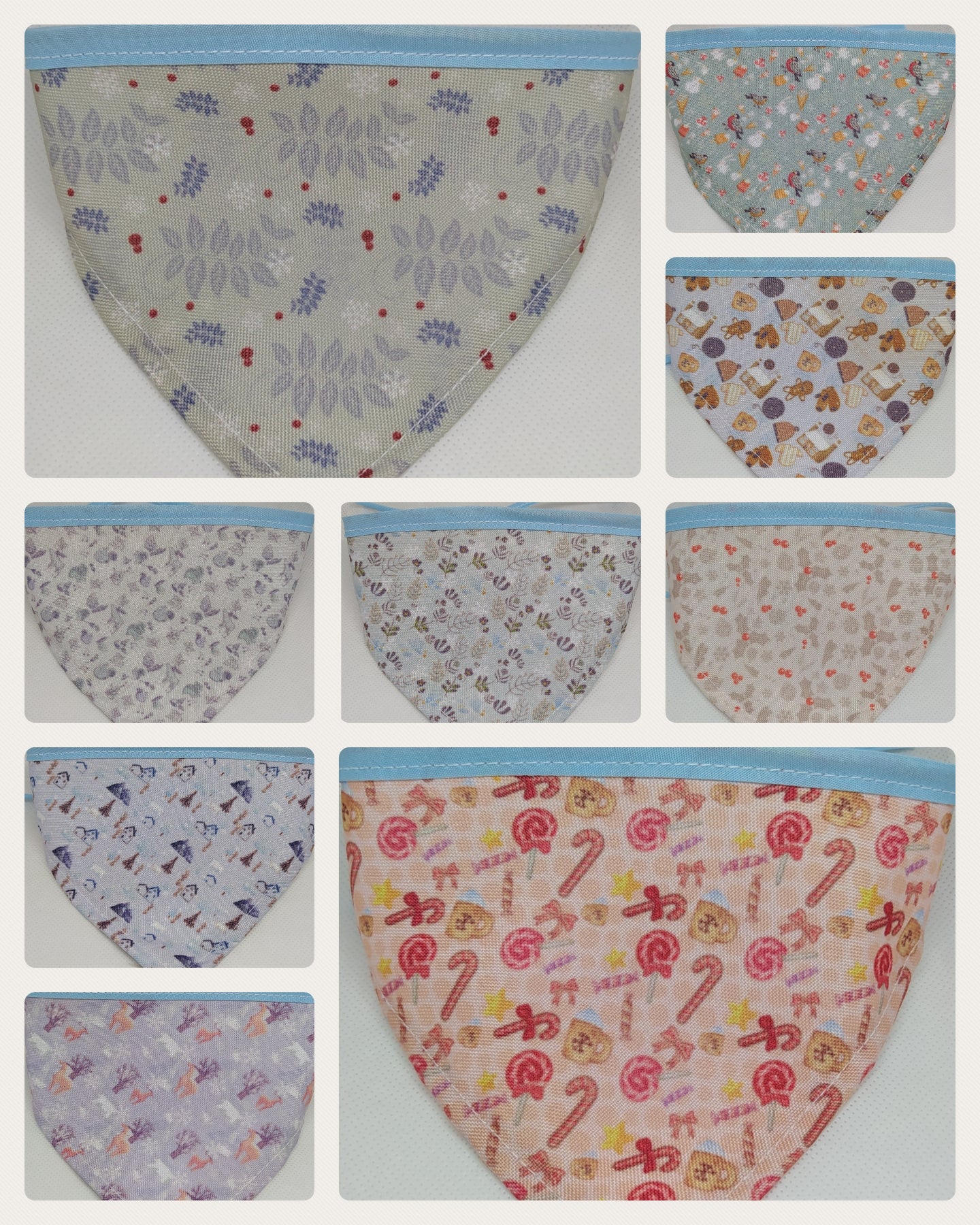 El triangulo mini los catetos miden 10 cm y el largo incluyendo el bies para el amarre es de 35 cm, el chico 15 cm x 42 cm, el mediano 20 cm x 52 cm y el grande 25 cm x 60 cm aproximadamente