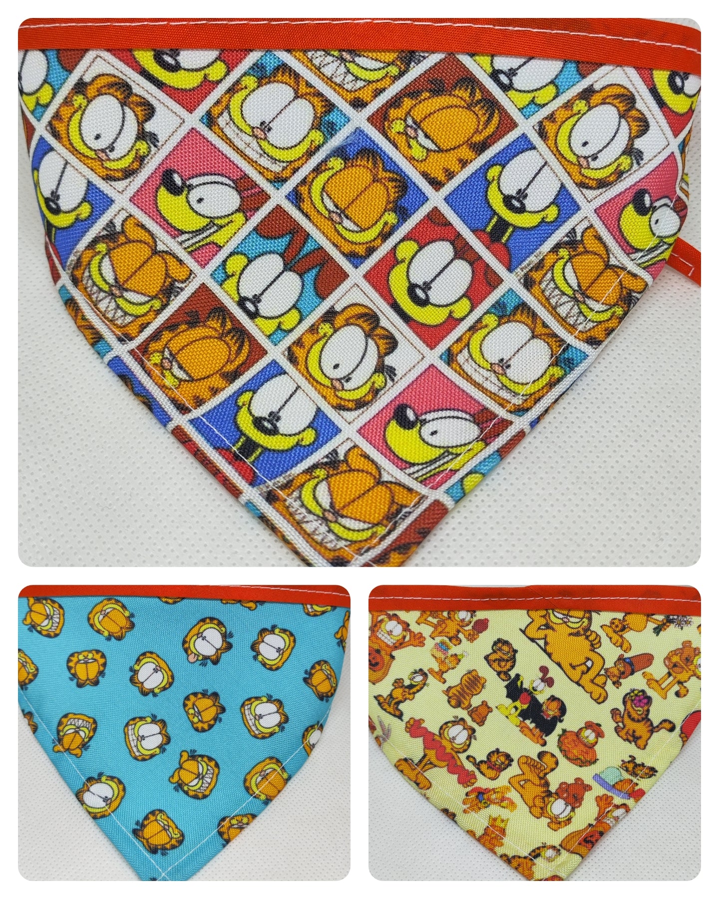 El triangulo mini los catetos miden 10 cm y el largo incluyendo el bies para el amarre es de 35 cm, el chico 15 cm x 42 cm, el mediano 20 cm x 52 cm y el grande 25 cm x 60 cm aproximadamente