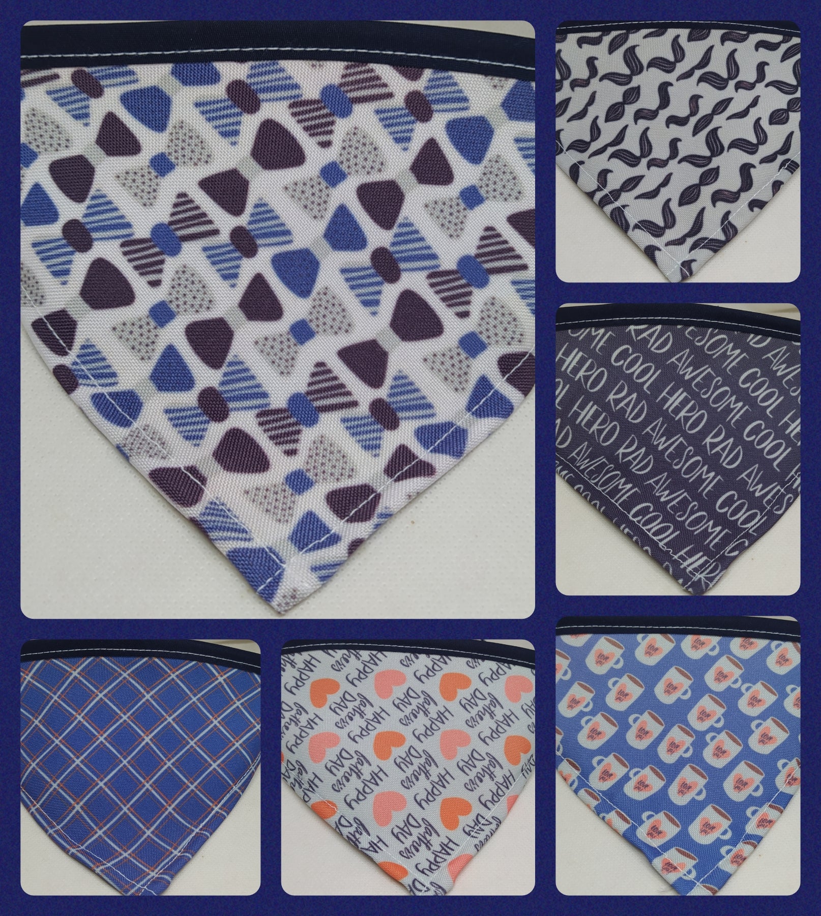 El triangulo mini los catetos miden 10 cm y el largo incluyendo el bies para el amarre es de 35 cm, el chico 15 cm x 42 cm, el mediano 20 cm x 52 cm y el grande 25 cm x 60 cm aproximadamente