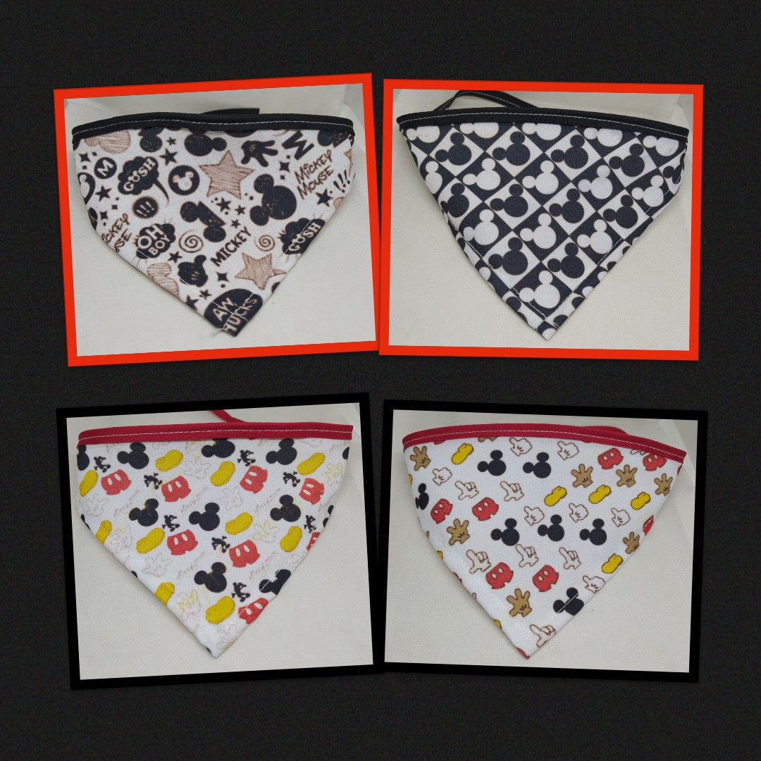 El triangulo mini los catetos miden 10 cm y el largo incluyendo el bies para el amarre es de 35 cm, el chico 15 cm x 42 cm, el mediano 20 cm x 52 cm y el grande 25 cm x 60 cm aproximadamente