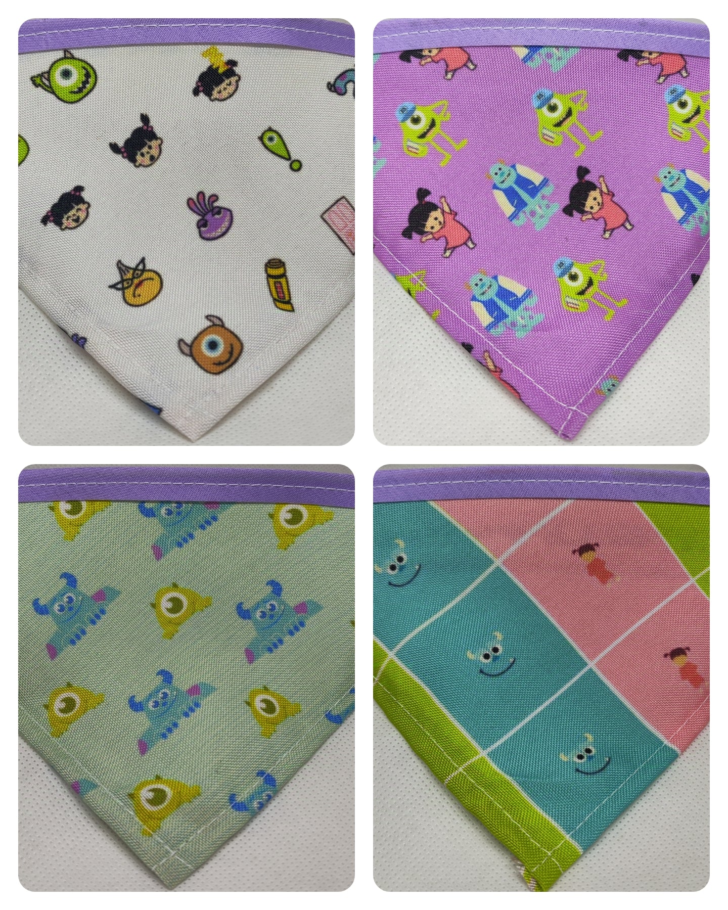 El triangulo mini los catetos miden 10 cm y el largo incluyendo el bies para el amarre es de 35 cm, el chico 15 cm x 42 cm, el mediano 20 cm x 52 cm y el grande 25 cm x 60 cm aproximadamente