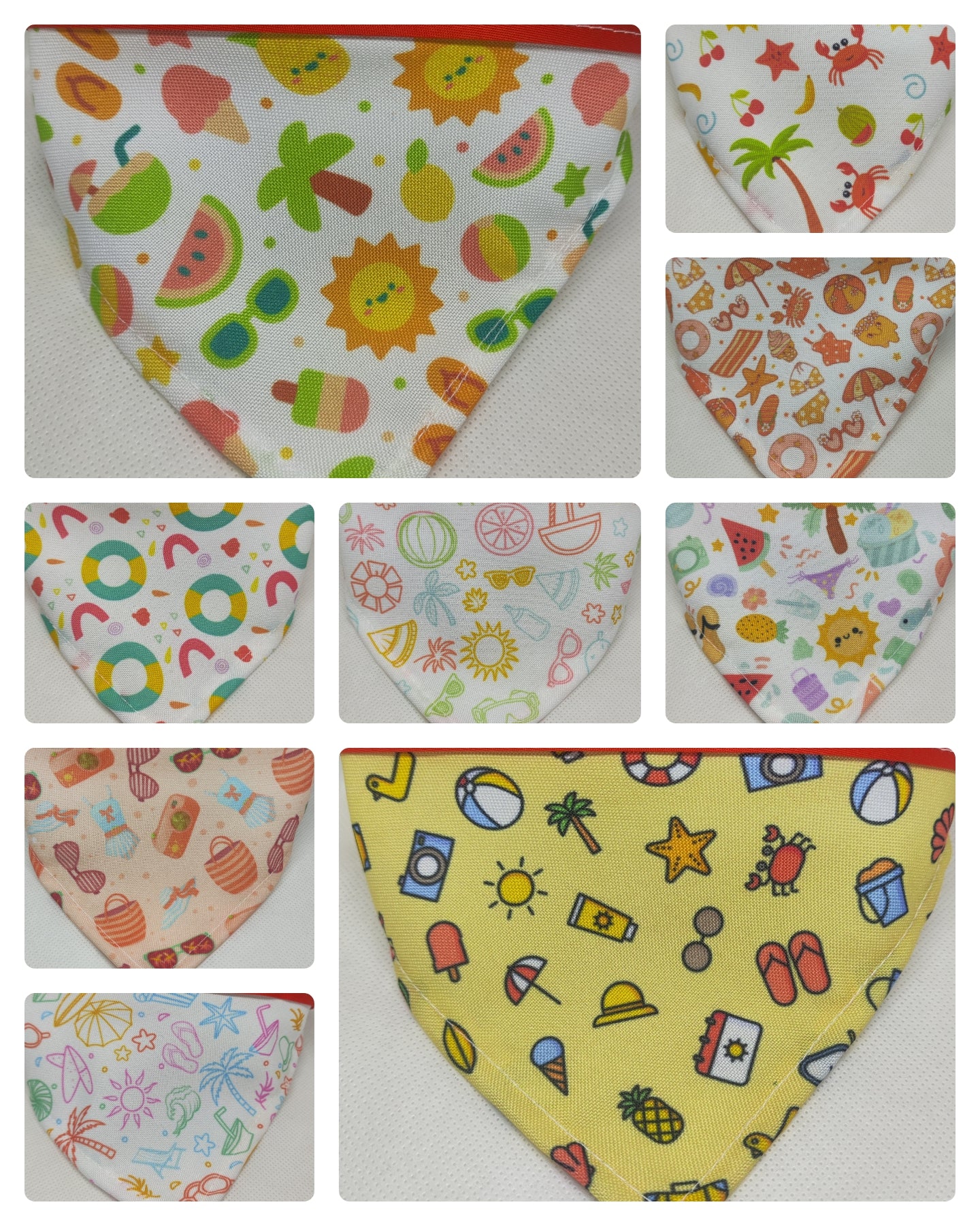 El triangulo mini los catetos miden 10 cm y el largo incluyendo el bies para el amarre es de 35 cm, el chico 15 cm x 42 cm, el mediano 20 cm x 52 cm y el grande 25 cm x 60 cm aproximadamente