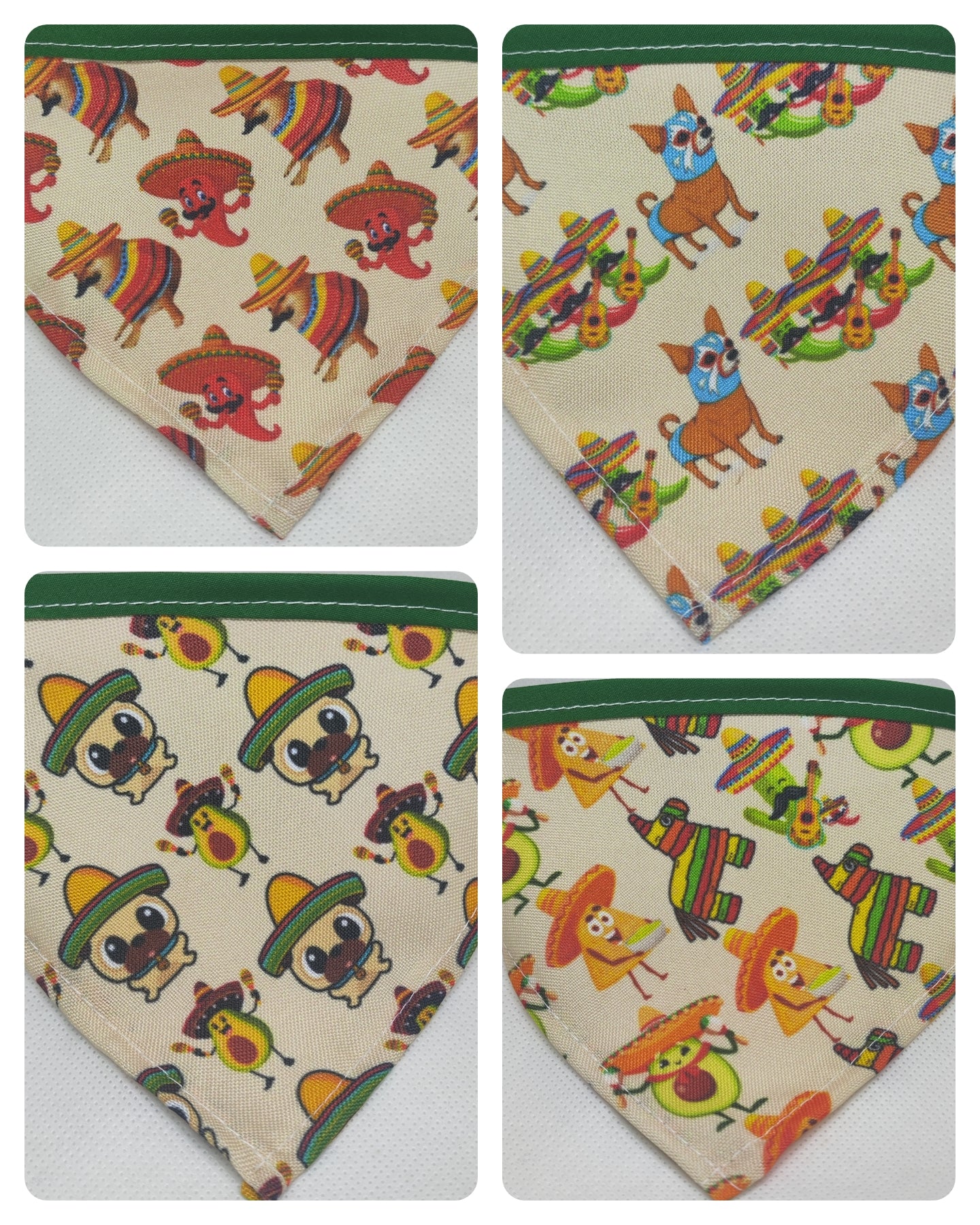 El triangulo mini los catetos miden 10 cm y el largo incluyendo el bies para el amarre es de 35 cm, el chico 15 cm x 42 cm, el mediano 20 cm x 52 cm y el grande 25 cm x 60 cm aproximadamente