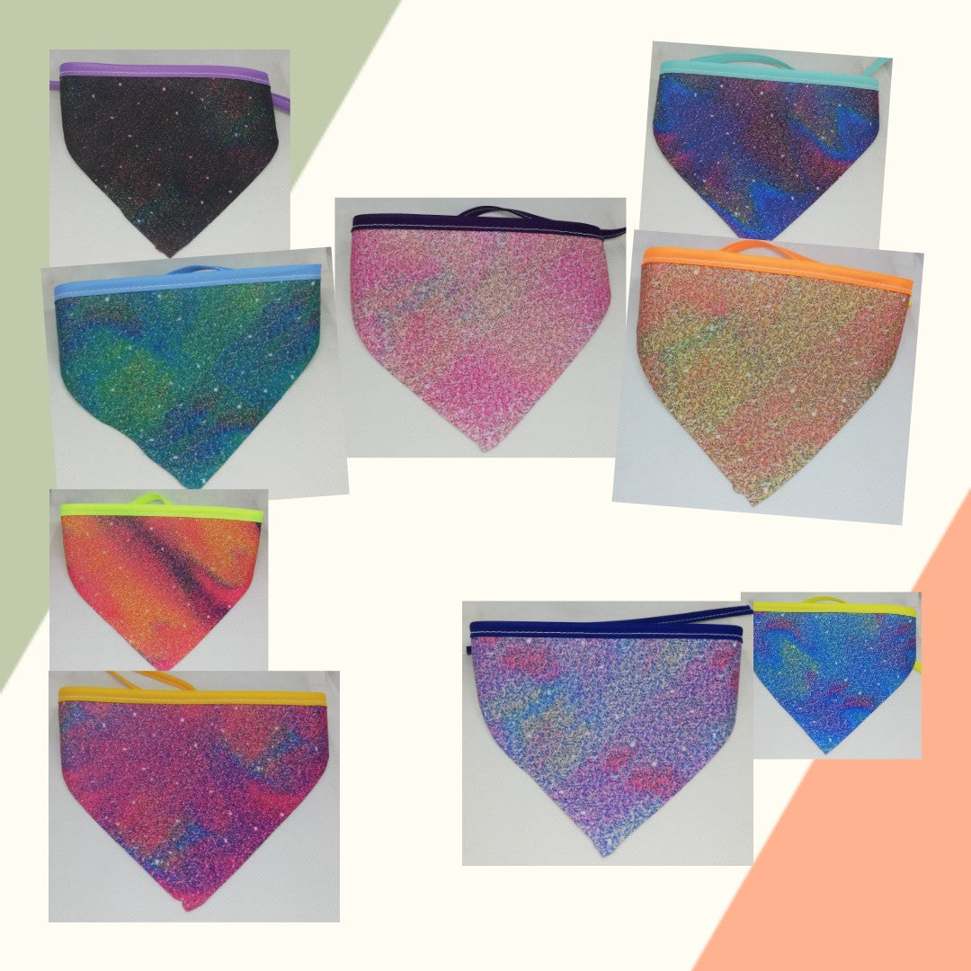 El triangulo mini los catetos miden 10 cm y el largo incluyendo el bies para el amarre es de 35 cm, el chico 15 cm x 42 cm, el mediano 20 cm x 52 cm y el grande 25 cm x 60 cm aproximadamente