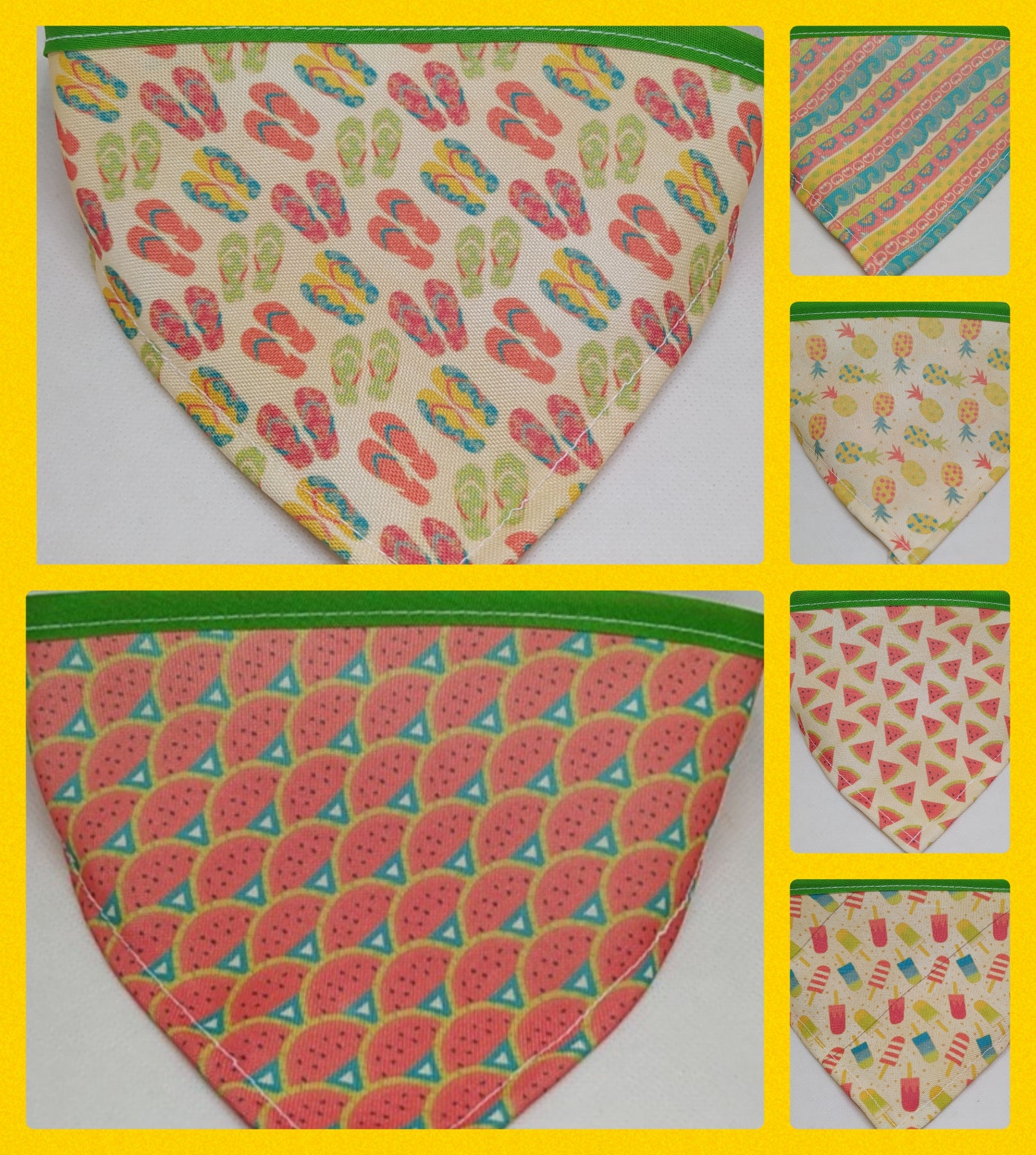 El triangulo mini los catetos miden 10 cm y el largo incluyendo el bies para el amarre es de 35 cm, el chico 15 cm x 42 cm, el mediano 20 cm x 52 cm y el grande 25 cm x 60 cm aproxima