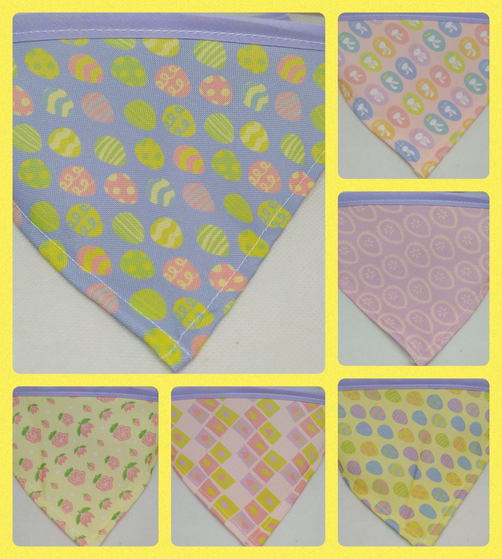 El triangulo mini los catetos miden 10 cm y el largo incluyendo el bies para el amarre es de 35 cm, el chico 15 cm x 42 cm, el mediano 20 cm x 52 cm y el grande 25 cm x 60 cm aproximadamente