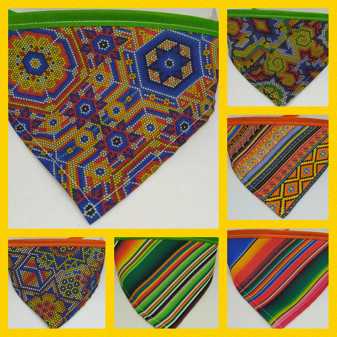 El triangulo mini los catetos miden 10 cm y el largo incluyendo el bies para el amarre es de 35 cm, el chico 15 cm x 42 cm, el mediano 20 cm x 52 cm y el grande 25 cm x 60 cm aproximadamente