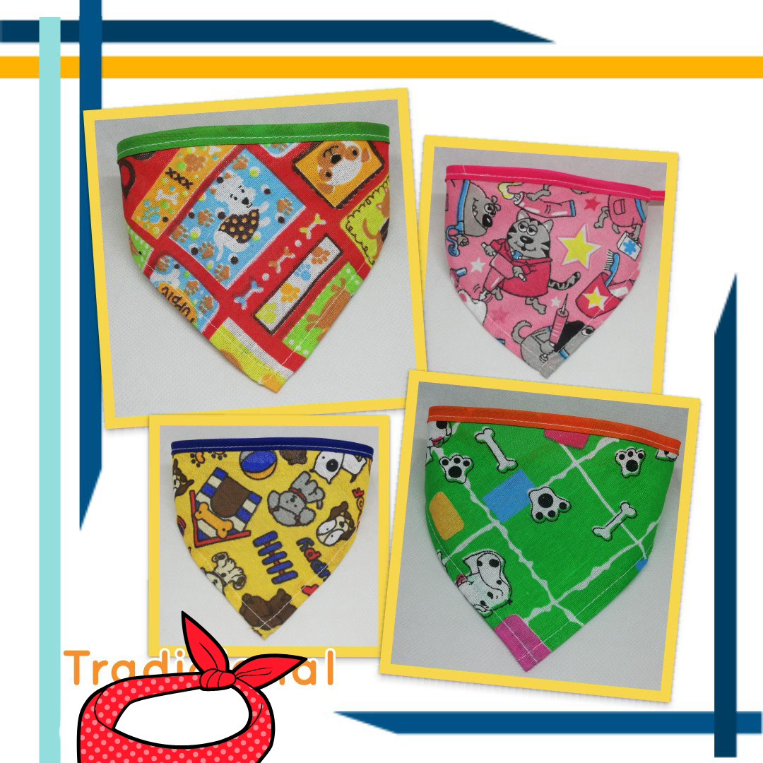 El triangulo mini los catetos miden 10 cm y el largo incluyendo el bies para el amarre es de 35 cm, el chico 15 cm x 42 cm, el mediano 20 cm x 52 cm y el grande 25 cm x 60 cm aproximadamente